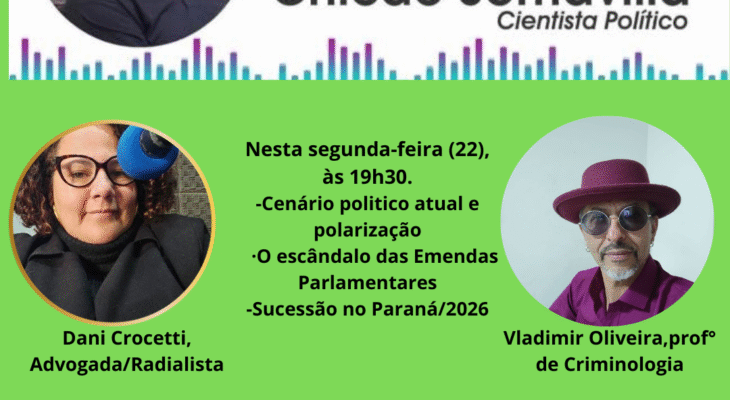 🎤 LIVE SEGUNDA-FEIRA, (22) ÀS 19h30. Participe da análise aprofundada ao vivo com Dani Crocetti e Vladimir Oliveira: Cenário atual e polarização O escândalo das Emendas Parlamentares A disputa pela sucessão no Paraná em 2026 Convidados: Dani ...Bolsonaro, crítico dos direitos humanos, agora apela para os Direitos Humanos